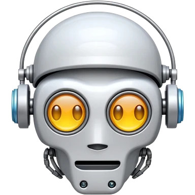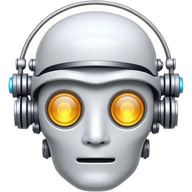 Emoji stylisé d'un cerveau robotique avec un circuit imprimé visible et un petit halo lumineux au-dessus, fond blanc emoji | AI Emoji Generator