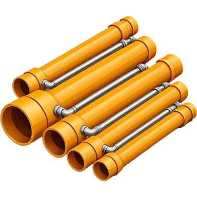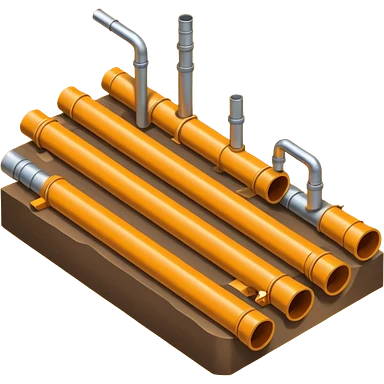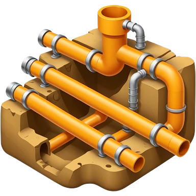 Emoji-style illustration of pipe installation in a trench, flat vector look, bold outlines, minimal details, no background emoji