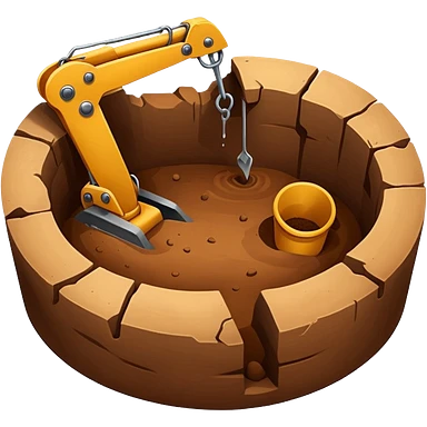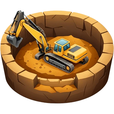 Emoji-style illustration of an excavation pit, flat vector look, bold outlines, minimal details, no background. emoji