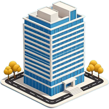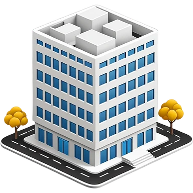 Emoji-style illustration of a BIM model (3D building model), flat vector look, bold outlines, minimal details, no background emoji
