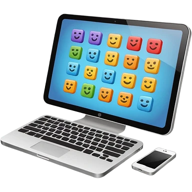 Emoji-style illustration of computer-based planning, flat vector look, bold outlines, minimal details, no background emoji