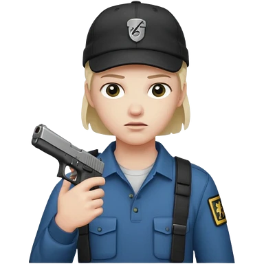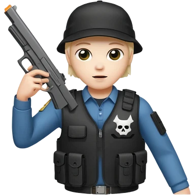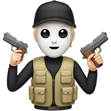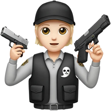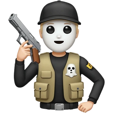 Emoji de fantasmita con una Glock 17 en la mano izquierda, con gorra y un chaleco antibalas emoji