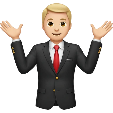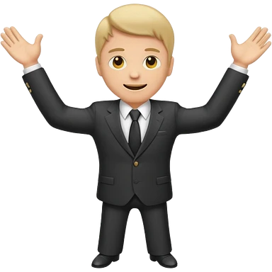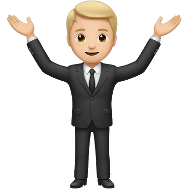 Emoji-style sticker of a man in a suit with arms spread wide to the sides emoji