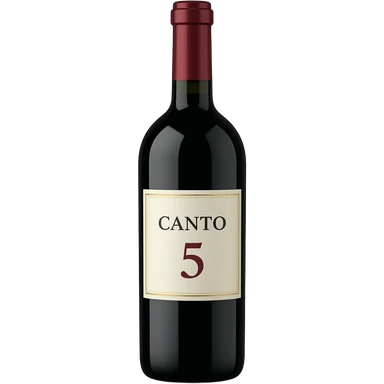 Emoji de una botella de vino de color rojo entera que tenga la palabra CANTO5 a lo largo de manera horizontal en letras blancas emoji