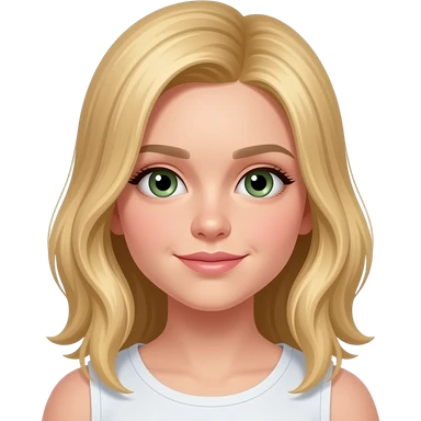 13 year old girl, blond hair that's slightly below to her armpits, green brown eyes emoji