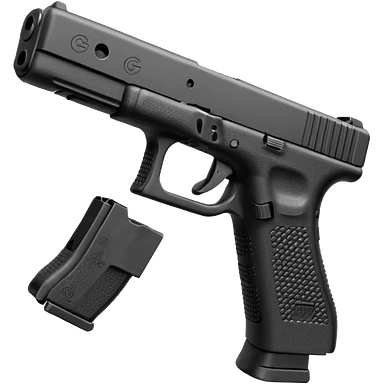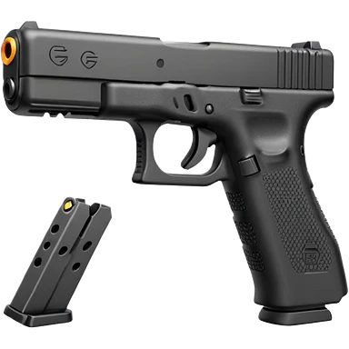 emoji of a compact pistol resembling a Glock 17 with an extended magazine, flat vector style, simple shapes, bold outlines, high contrast, small details removed, 1-color shadow, transparent background, 512x512 emoji