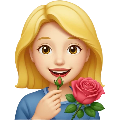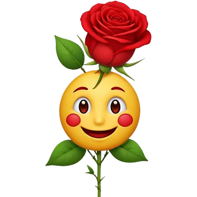 A charming emoji with a rose stem in the mouth and a red rose at the end of the stem emoji
