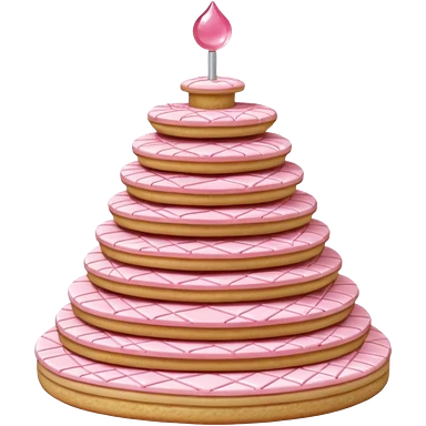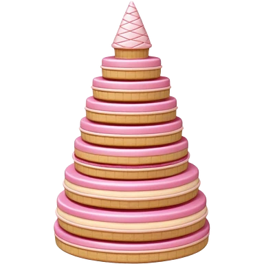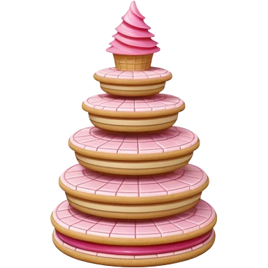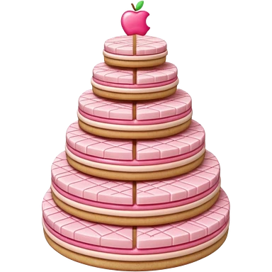 3D render of Wafer Tower, made entirely of dessert materials, glistening sugar crystal texture, grid-patterned beige cookie with pink cream filling, delicious confectionery aesthetic, Apple emoji style, isolated on white background --v 6.0. emoji