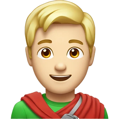 male character emoji, white forehead band with red circle, hearts for eyes, happy expression, green shirt emoji