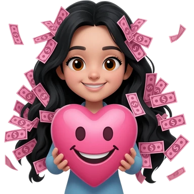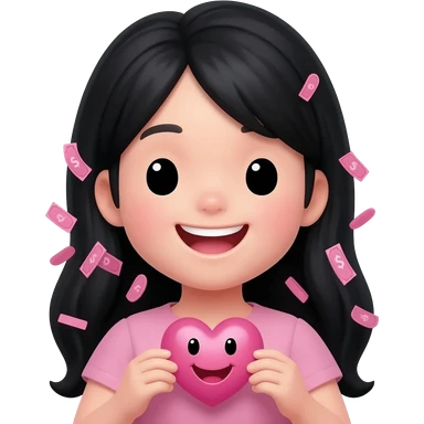 i want an emoji with a girl with pink money pieces in her hair and the rest of her hair black, i want her to be holding a pink heart with a happy face emoji