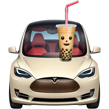 bobatea in tesla, without a person and with the tesla logo and remove tht seat bit and keep the boba tea like tht and can u make it smaller like emojie size so it can go on pinterest emoji