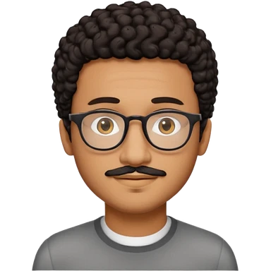 A light brown man with black hair with a neutral facial expression, styled exactly like Apple emojis. The background is plain, keeping the focus on the character. He has square bold slightly tinted glasses. A mustache and a sharp beard by the chin. emoji