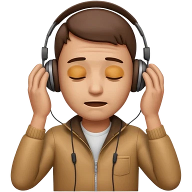 emoji with head phone holding both hands listening looks like sad emoji | AI Emoji Generator