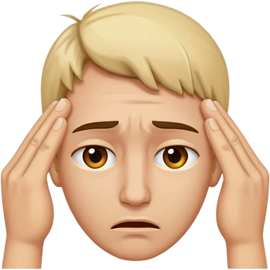 a headache hands on the top of the head a pain expresion a boy a band-aid on the forehead emoji