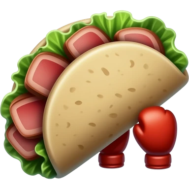 Doner kebab emoji with boxing gloves, cute but competitive face, fighting stance, clean glossy emoji style emoji