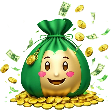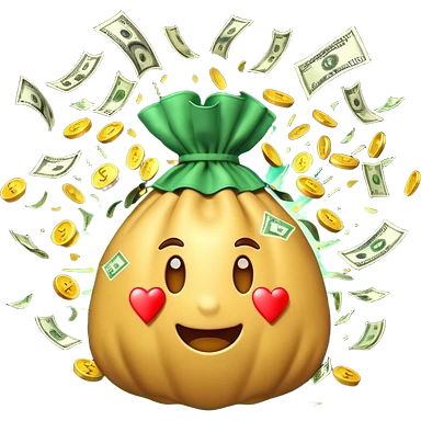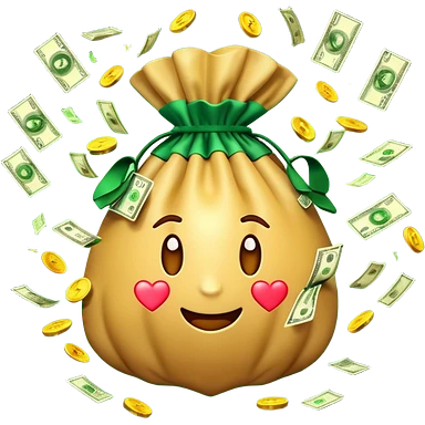 3D emoji style, money bag exploding with cash, casino vibe, dynamic motion, soft glow, high detail, transparent background emoji