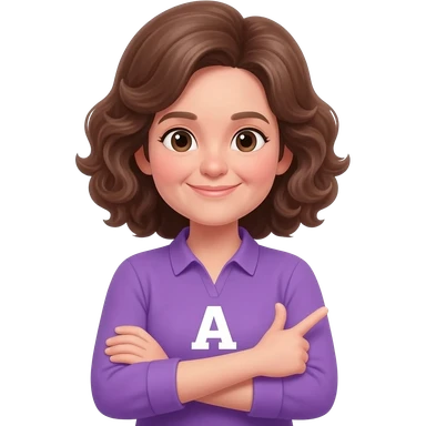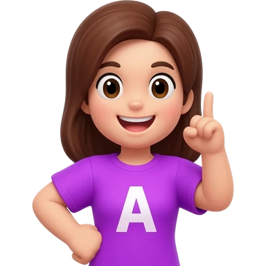 emoji de una chica haciendo tacha con los brazos una blusa morada con la letra A y pelo cafe que parezca monita de roblox emoji