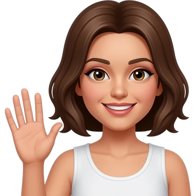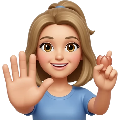 Emoji P qui fait un signe avec sa main comme coucou, je sais pas, mais pas de doigt d’honneur qui est maquillée avec des cheveux emoji