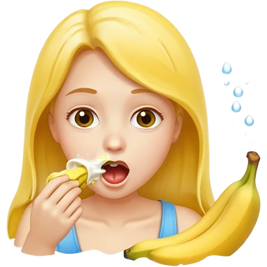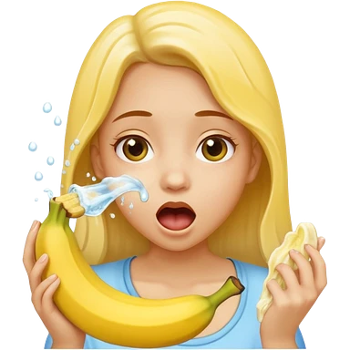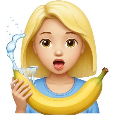 a girl rinsing mouth with pale yellow water coming out from a banana emoji