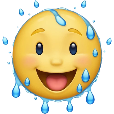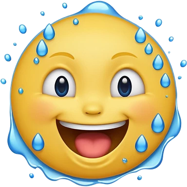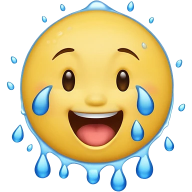 Emoji, yellow round laughing face, open mouth with Splashing blue tears emoji