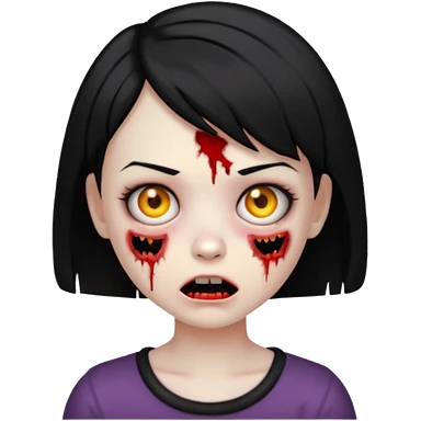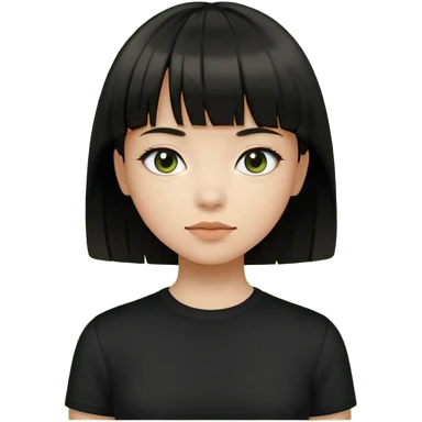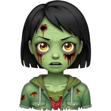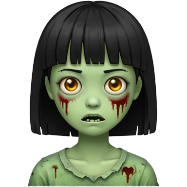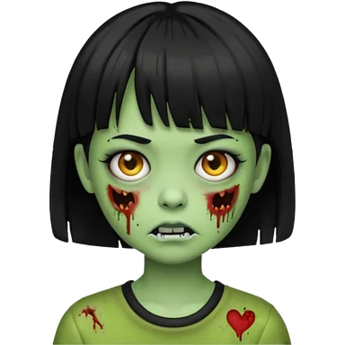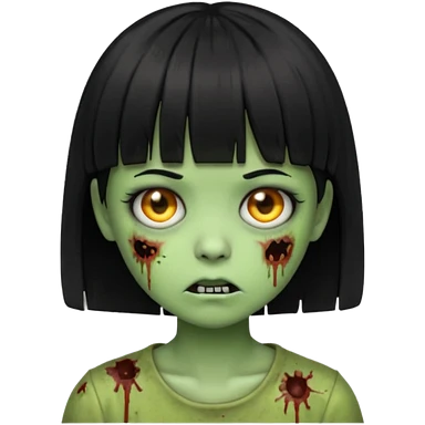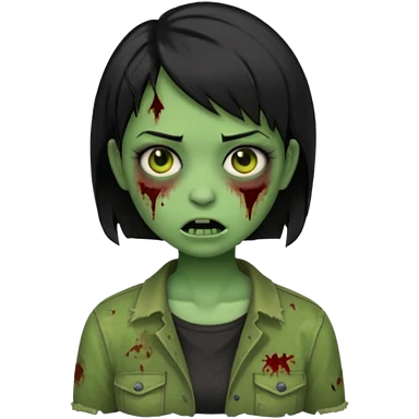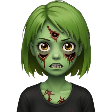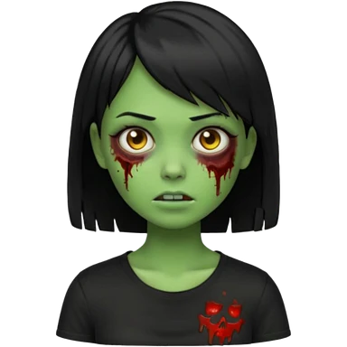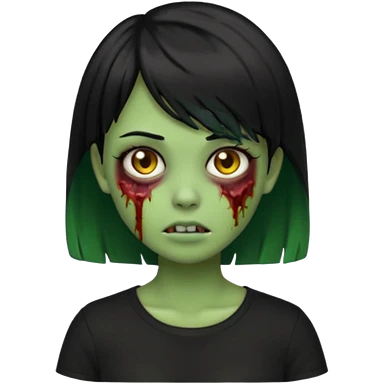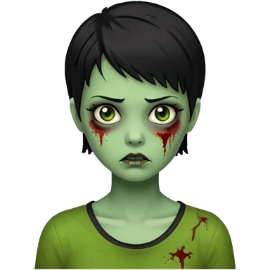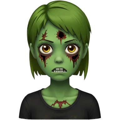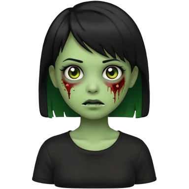 Emoji zombie girl verde com cabelo preto liso curto com franja com uma blusa preta emoji | AI Emoji Generator
