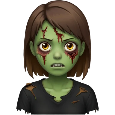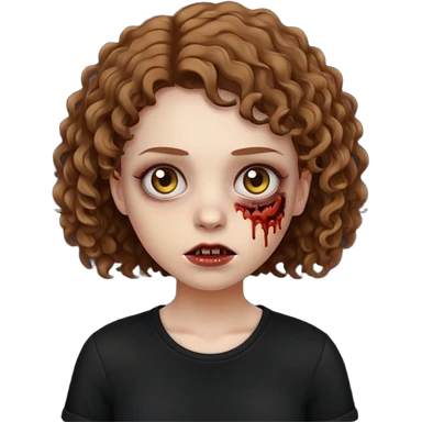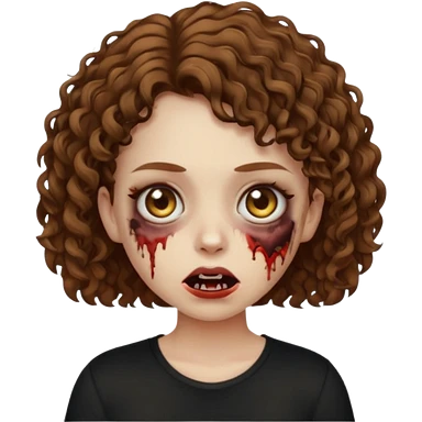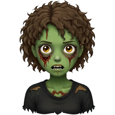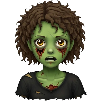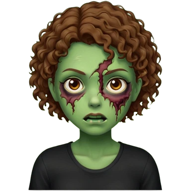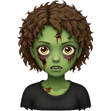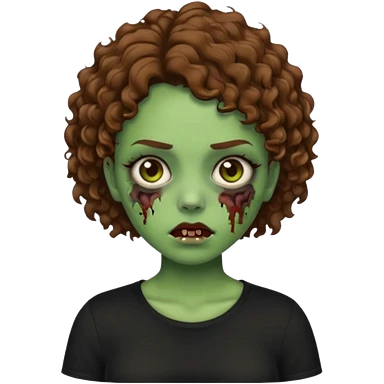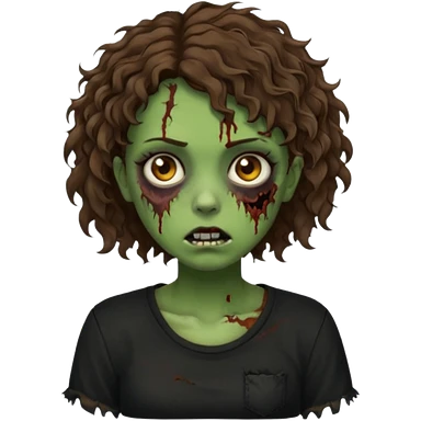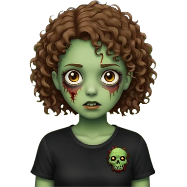 Zombie girl emoji com cabelo curto cacheado castanho com uma blusa preta emoji