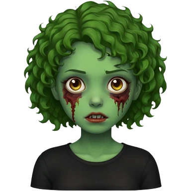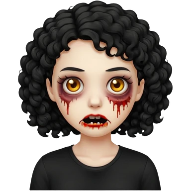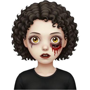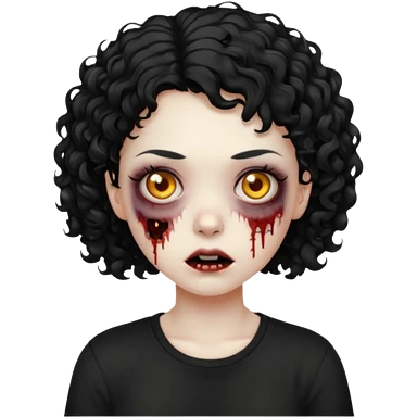 Zombie girl emoji com cabelo curto cacheado com uma blusa preta emoji