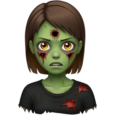 Zombie girl emoji verde com cabelo curto liso castanho no ombro com uma blusa preta emoji