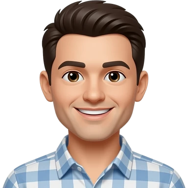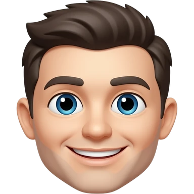 escrição para o emoji: Rosto de um jovem com pele clara e cabelo castanho escuro, curto e bem penteado, com franja leve e lados limpos. Expressão facial neutra/séria, com olhos ligeiramente abertos e lábios fechados, sem sorrir. Sobrancelhas grossas e retas, bem definidas. Está usando uma camiseta preta da The North Face, com o logotipo visível (pode simplificar ou omitir no emoji). O emoji deve ser no estilo cartoon, com o rosto em destaque e sem fundo. A pose é frontal, olhando direto para a "câmera", ideal para um emoji com expressão mais calma ou neutra. emoji