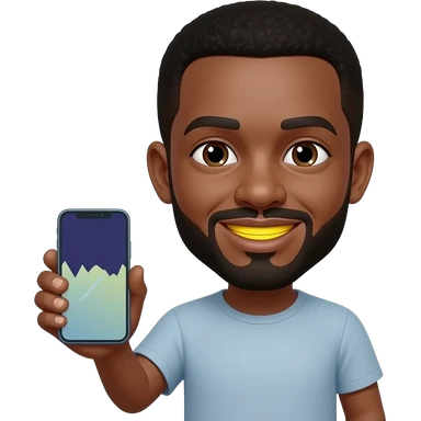 Emoji padrão preto com aparelho apagado com os dentes a mostra bem amarelo emoji