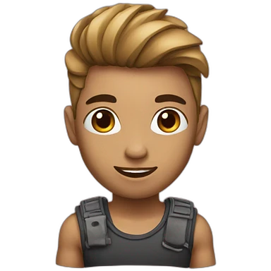 Crea un muchacho rockero, con pantalón camuflageado y una playera negra de NY yankees, con cabello rizado, brazos tatuados y un letrero que diga tichobboy emoji