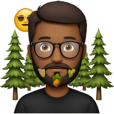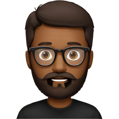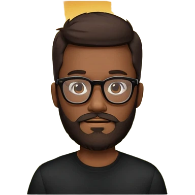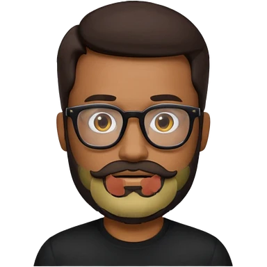 create a emoji man with beard black and dark brown hair , and glasses wooded color, sunkissed skin color, with a IA simbol and black shirt emoji