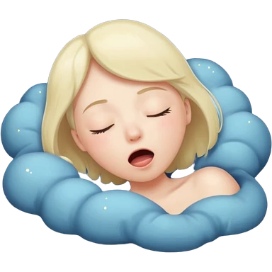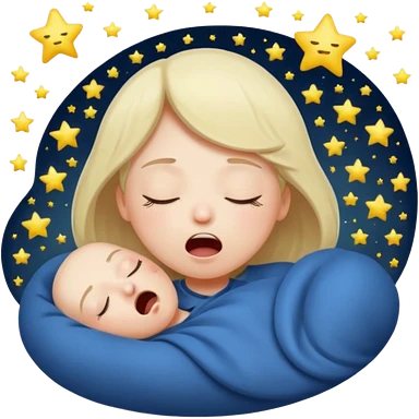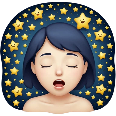 Emotion: sleepy, half-closed glowing eyes, tiny yawn, floating stars emoji