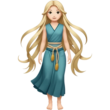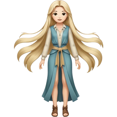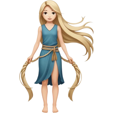 Empowered woman enjoying long tied hairs with full body emoji | AI Emoji Generator