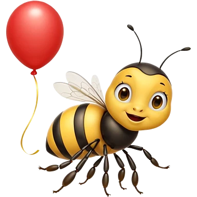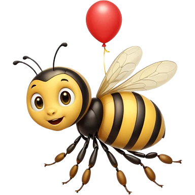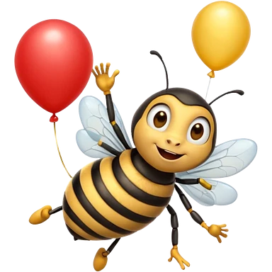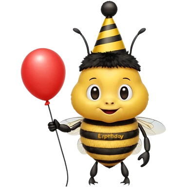 Bees with Birthday Hat, Excited bee carrying balloon emoji