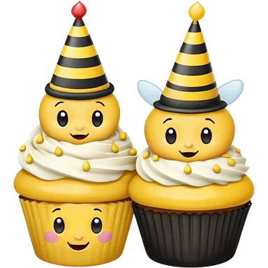 Bees with Birthday Hat, Embarrassed bee with cupcake emoji