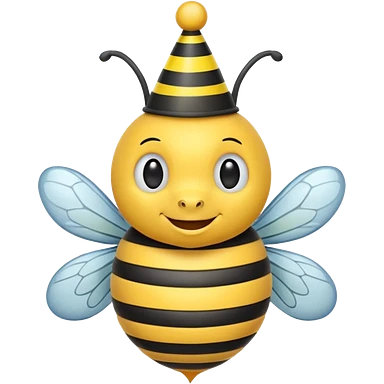 Bees with Birthday Hat, Happy bee with striped party hat emoji