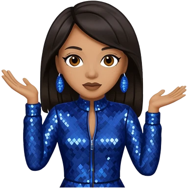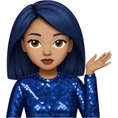 Monica, R&B Singer with dark brown hair, dark blue sequin outfit emoji