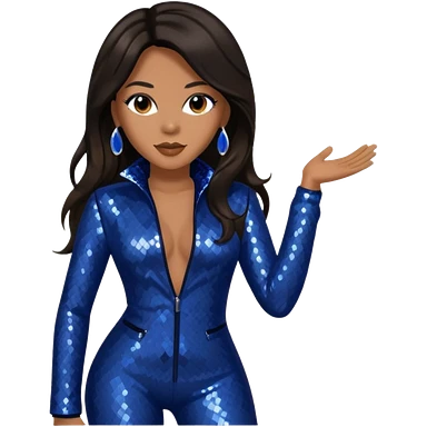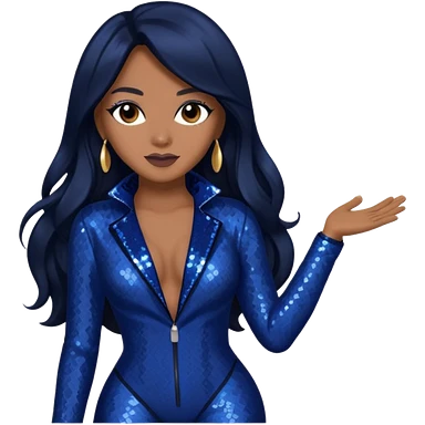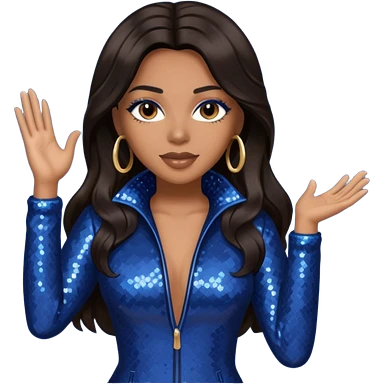 Monica, R&B Singer with long dark brown hair, dark blue sequin outfit emoji