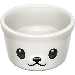 A sad cat (tricolour) is meowing around an empty bowl. emoji