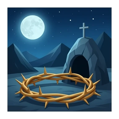 thorny crown, cross and empty cave tomb emoji