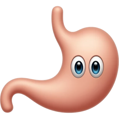 Generate a cute, cartoon-style stomach emoji with big eyes and a slightly sad expression, symbolizing hunger or an empty stomach. emoji