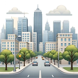 Empty streets with pavement, buildings on the sides, and streetlights, symbolizing urban life and pathways emoji | AI Emoji Generator