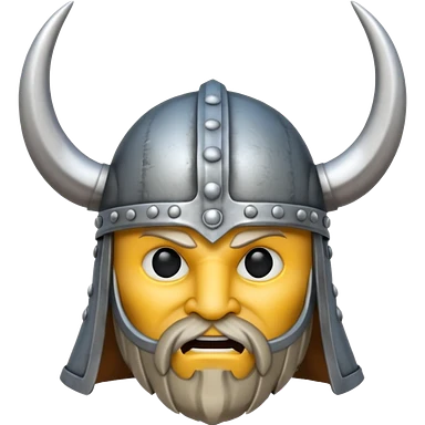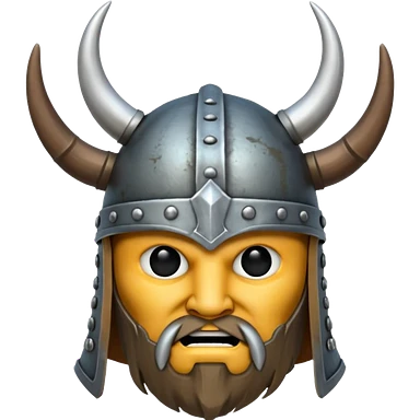 3D Viking emoji with a horned helmet, yellow round face, beard, smiling expression emoji