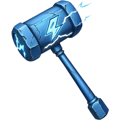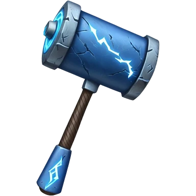 Short, heavy hammer with runes glowing blue, lightning crackling around it. emoji