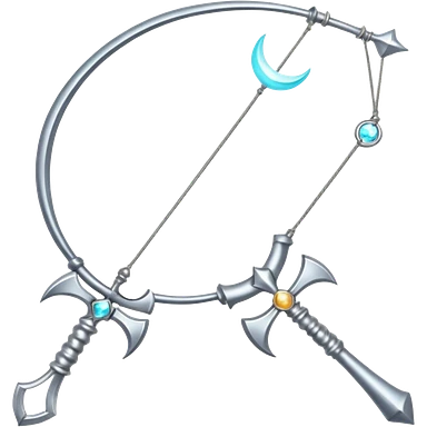 Elegant silver bow with glowing string, crescent-moon motifs. emoji