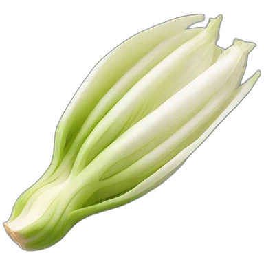 endive, whole, elongated, pointed, tightly packed, pale yellow to green, white base, smooth, crisp, 3D clean style, transparent background, optimized for emoji size emoji