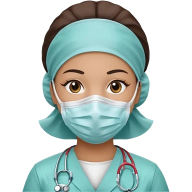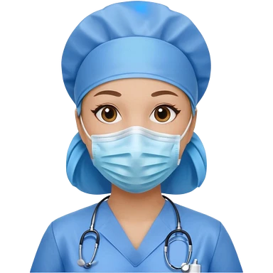 enfermera con uniforme azul navy, pelo castaño y lentes emoji