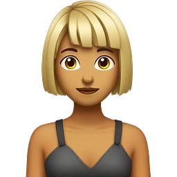 Una adolescente con ojos café claro, cabello marrón cla y con flequillo emoji