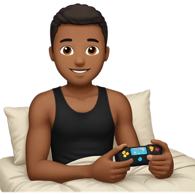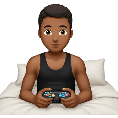 my black boyfriend in his bed with a black singlet on playing video games emoji